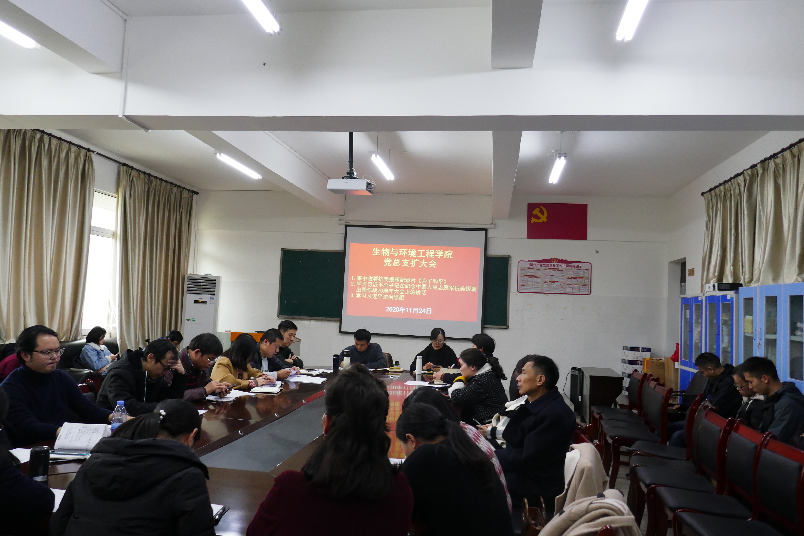 2020年11月24日13:00,生物与环境工程公司党总支召开扩大会议,集中收看《为了和平》,学习习近平总书记在纪念中国人民志愿军抗美援朝出国作战70周年大会上的讲话、学习习近平法治思想。公司教师党员、教师及员工党员参加会议。党总支书记唐运前主持会议,会议在党员活动室(A307室)举行。