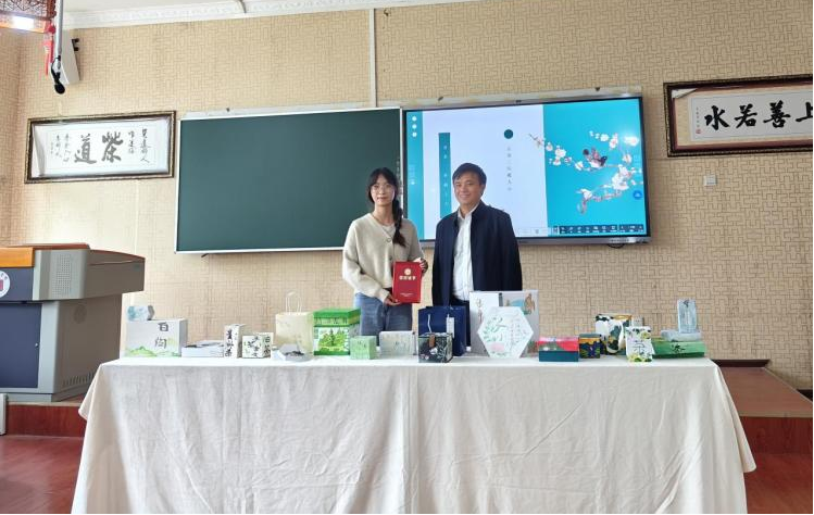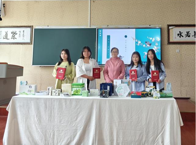 参赛选手按线上抽签的顺序依次上台介绍自己作品的设计理念,评委老师从理念构想表达、 搭配视觉设计、信息传达能力、 实用性四个方面对作品打分。统分环节老师和选手们近距离观赏和点评参赛作品给同学们进一步改进提升作品提出了意见和建议15选手经过激烈角逐,最后决出一等奖一名,二等奖三名,三等奖五名。2022级茶学专业王婷、王华强为瀑布毛峰茶设计的作品《茶溢瀑乡》获得第一名。获得二等奖的作品分别是2022级茶学专业张雕雕与2022级学前教育专业叶雨彤合作的《静心茗香》、2022级学前教育专业龙黎、罗报兰合作的《茶香一路,醇厚万里》、2022级茶学专业郭兴美和王清合作的《东方美人》。另有2023级通信专业、2023级环境艺术设计专业、2022级美术学等专业同学设计的五组作品获三等奖。