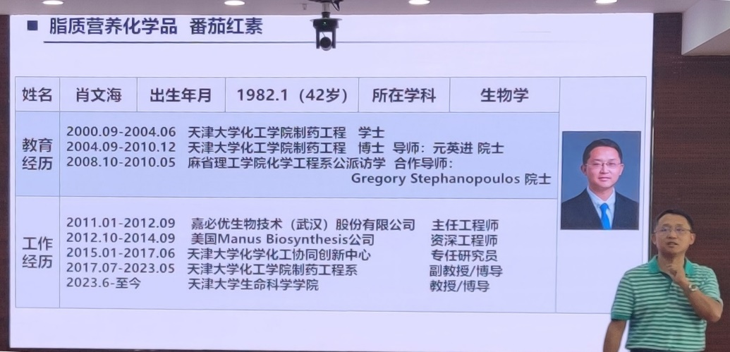 为加快推进公司研究生教育和生物科学专业高质量发展,2024年6月15日,天津老员工命科学公司教授博士生导师中国药学会制药工程专委会委员中国化工学会精细化工专委会委员肖文海赴公司作题为“脂质营养化学品番茄红素合成生物制造”的学术报告。永利3044noc生物与医药专业研究生、生物科学、生物工程、园林专业本科生参加报告会,会议由生物科学及生态文明教育教研室主任赵许朋主持