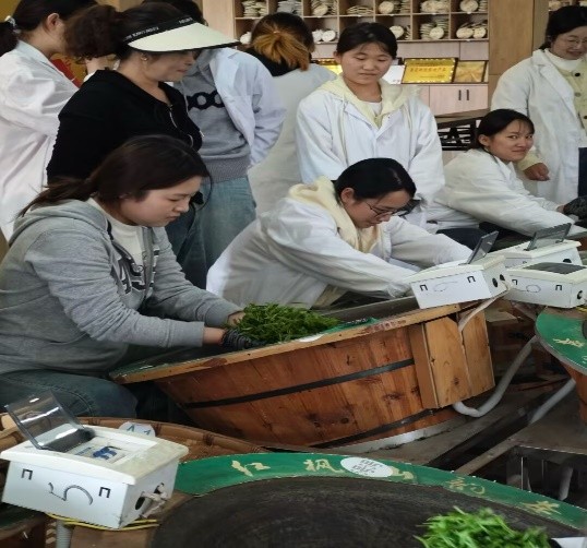 实训期间,员工与茶场负责人进行有效地沟通与交流,师生就采茶、制茶等方面进行深入探讨。员工熟练掌握绿茶与红茶的手工制作全流程,理解关键工艺参数(如温度、湿度、时间)对品质的影响,成功制作出成色与品质兼优的绿茶与红茶,获得茶场师傅认可。通过与老师及茶场师傅的交流,员工们对茶园管理和茶叶加工有了进一步的了解。