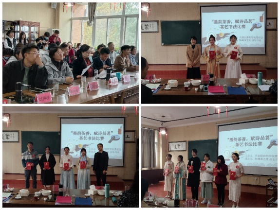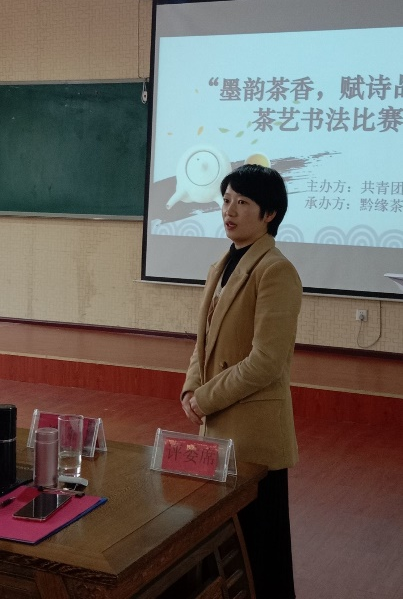 2022年11月15日,由校团委主办,黔缘茶艺社承办的“墨韵茶香,赋诗品茗”茶艺书法比赛在茶艺室举行。生物与环境工程公司党委书记唐运前、经理刘燕出席活动。陈智雄老师、刘阳老师、徐霖老师、旦艺豪老师、江涛老师、左鸿艺老师、柯贤泽老师担任比赛评委。