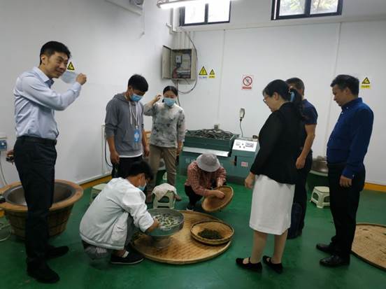 实习过程中,由茶学教研室刘声传老师指导同学们进行穴盘育苗、不同茶树品种植物学特征观测、不同茶树品种适应性比较、茶园试验基地规划设计等内容;由奉红琼老师指导同学们进行白茶、绿茶、红茶的加工初制,及各类茶样的审评等内容;由刘阳老师指导同学们进行茶叶冲泡技巧、茶叶销售过程中沟通技巧及注意事项、茶食品的创意制作等内容。实习过程中生物与环境工程公司党总支书记唐运前、经理刘燕、党总支副书记高喜明、副经理叶孝勇高度重视,多次前往实习地点与同学进行交流。