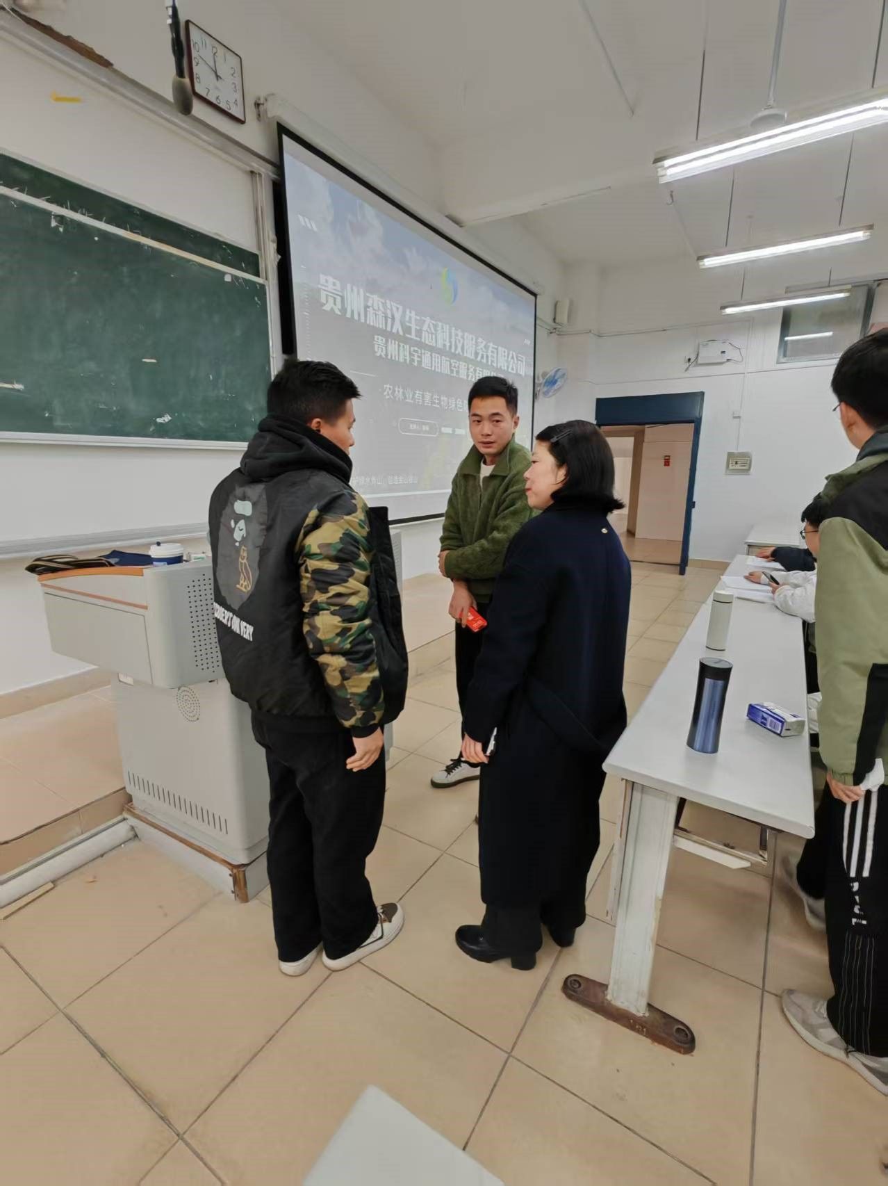 企业负责人详细介绍了公司的发展历程、技术体系及人才需求,重点展示了在林业有害生物防控、农业数字化管理等领域的创新成果。石登红副书记强调,森汉科技的业务方向与公司园林、环境工程、生物工程、生物信息学等专业高度契合,公司的无人机应用方面也具有较好前景,希望未来通过长效的毕业生招聘、联合课题研究等方式,实现人才培养与产业需求的结合。企业负责人表示支持生环公司的大三、大四员工参与一线项目实践,为毕业就业提前掌握技能。